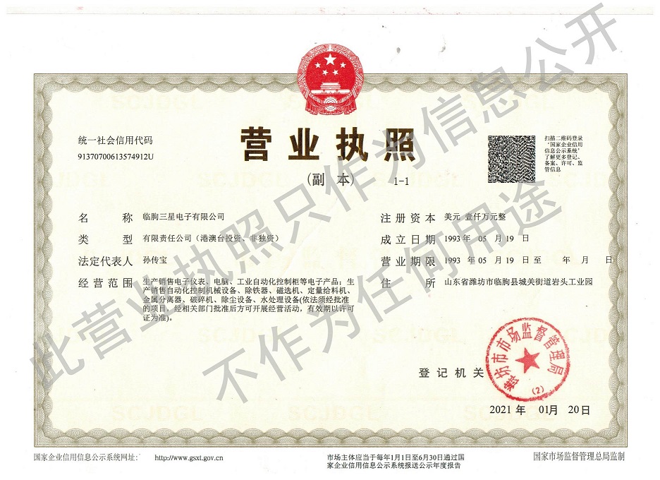 臨朐三星電子有限公司是生產(chǎn)水泥自動(dòng)化計(jì)量控制設(shè)備和建材機(jī)械設(shè)備的企業(yè)。公司總經(jīng)理和企業(yè)主要負(fù)責(zé)人、科技人員均有多年從事該行業(yè)的歷史,對(duì)地方水泥企業(yè)的技術(shù)改造積累了經(jīng)驗(yàn),為千余家水泥廠(chǎng)提供了控制微機(jī)、儀表及給料機(jī)械設(shè)備,如定量給料機(jī)、干粉磁選機(jī)、金屬探測(cè)儀、金屬自動(dòng)分離器、管道除鐵器、電磁除鐵器、自卸式除鐵器、永磁除鐵器、散裝計(jì)量稱(chēng)、起重電磁鐵等,為工業(yè)的技術(shù)進(jìn)步做出了貢獻(xiàn),產(chǎn)品遍布江西、江蘇、湖北、浙江、陜西、安徽、福建、湖南等省份。