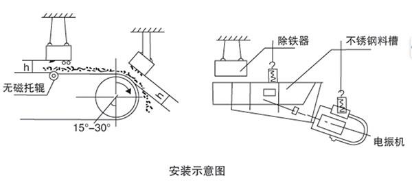 RCYB系列懸掛式永磁除鐵器適用于皮帶輸送機(jī),振動給料機(jī)、下料溜槽上的非磁性物料中除鐵。