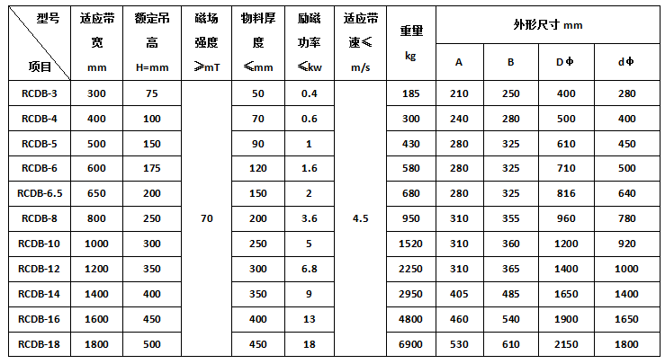 RCDB、RCDY、PDC系列(圓盤式)干式電磁除鐵器用在破碎機(jī)前和輸送機(jī)膠帶上的任意物料的除鐵,可適用于各惡劣的環(huán)境條件。